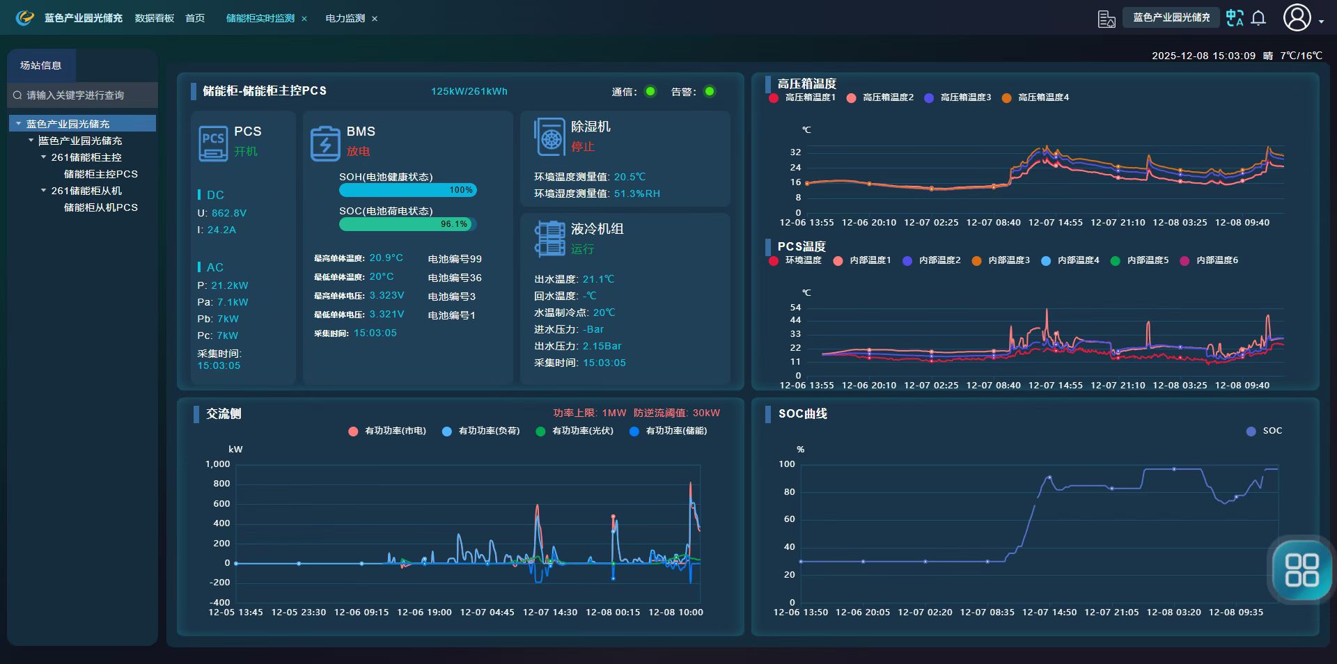 技术方案:本项目采用 “光储充一体化”智慧能源解决方案。具体实施包括:在园区车棚及厂房屋顶建设320kW光伏系统;配置两台125kW/261kWh储能柜,执行谷时充电、峰时放电策略;建设18个直流快充终端,构成总功率1200kW的智能充电网络。所有设备将接入智慧能源管理平台,依托园区1250kVA配电网络,实现对发电、储能、充电及用电负荷的一体化智能调度,确保“自发自用、余电存储、峰谷套利”目标的高效达成。