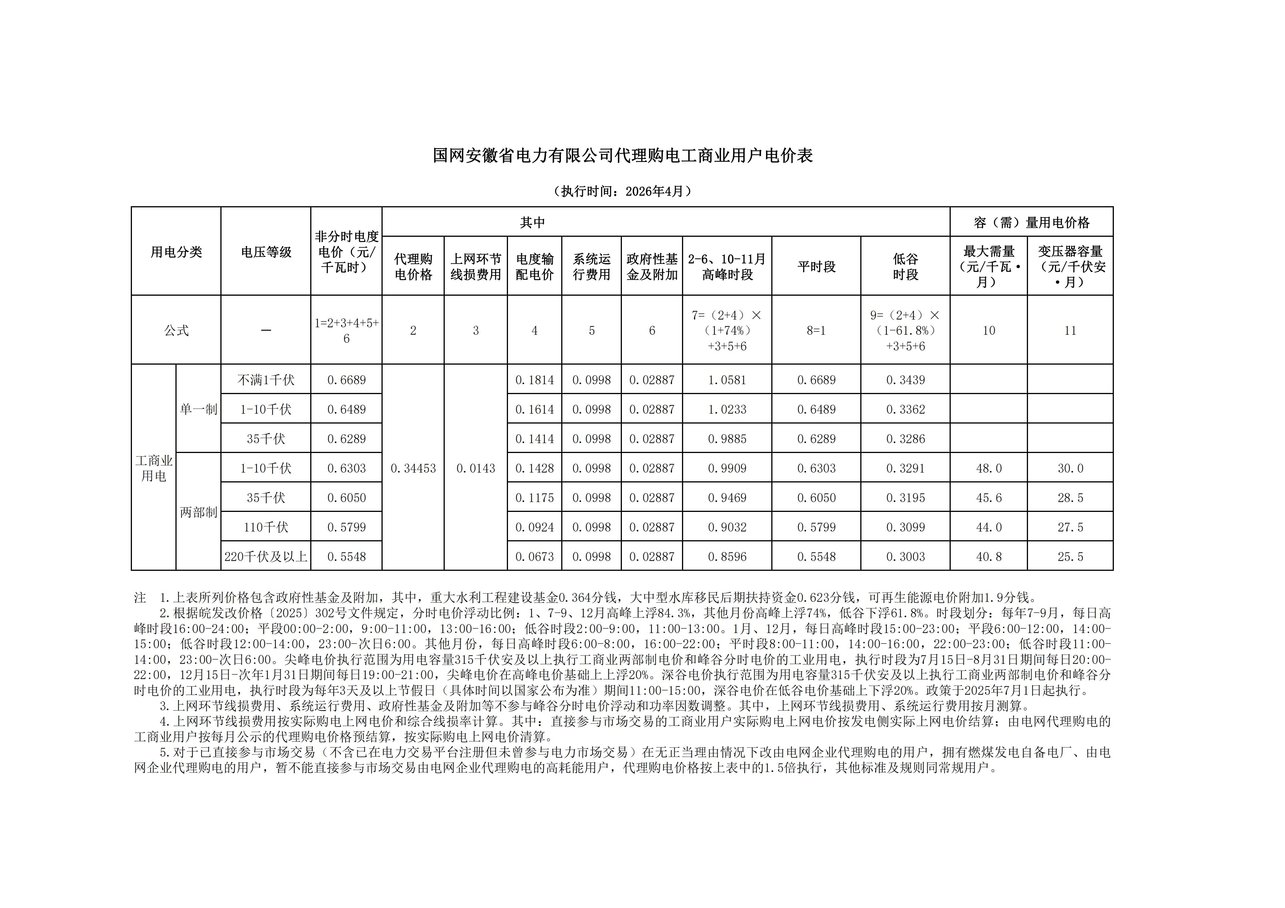 2.安徽省4月工商业电价