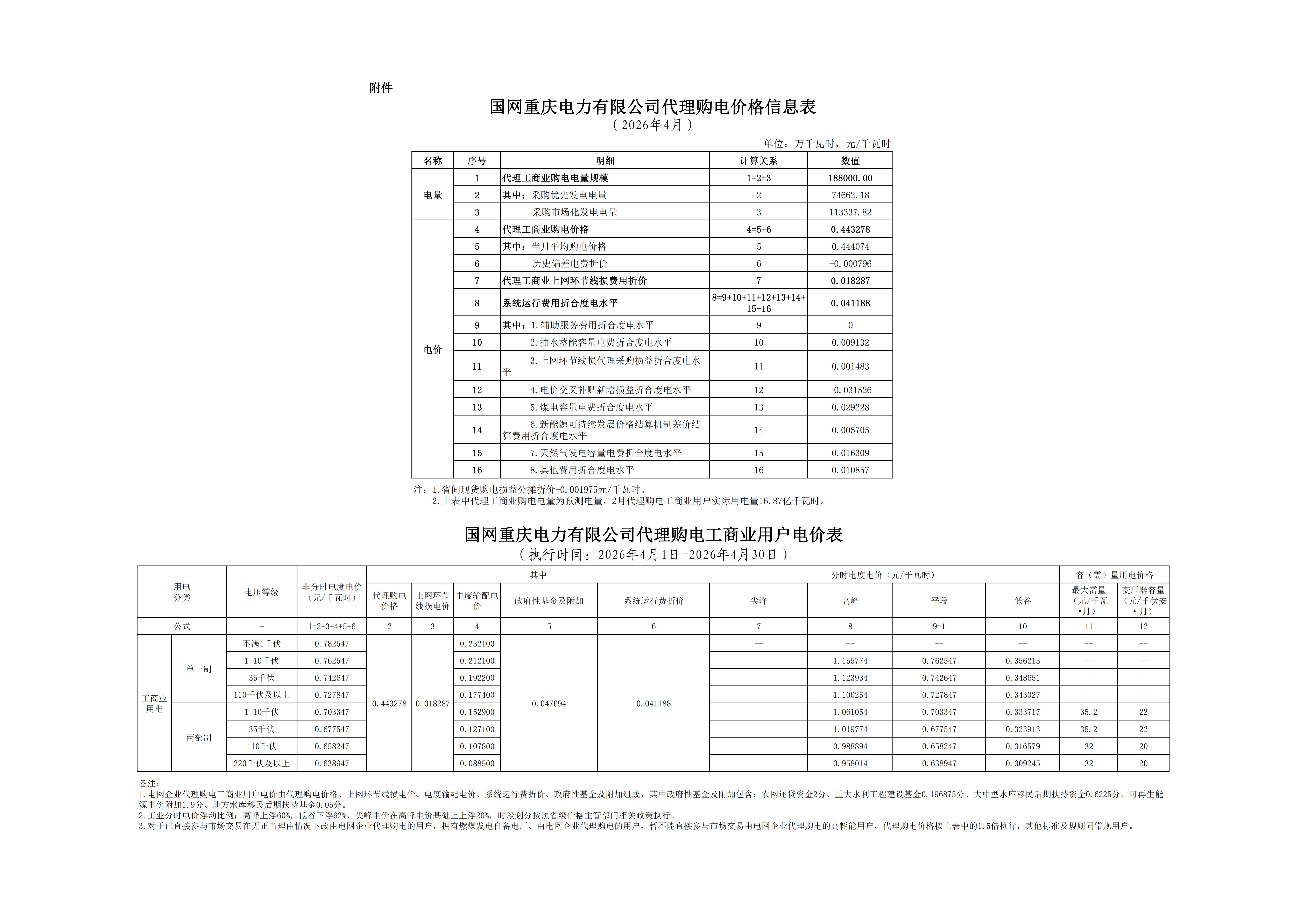 4.重庆4月工商业电价