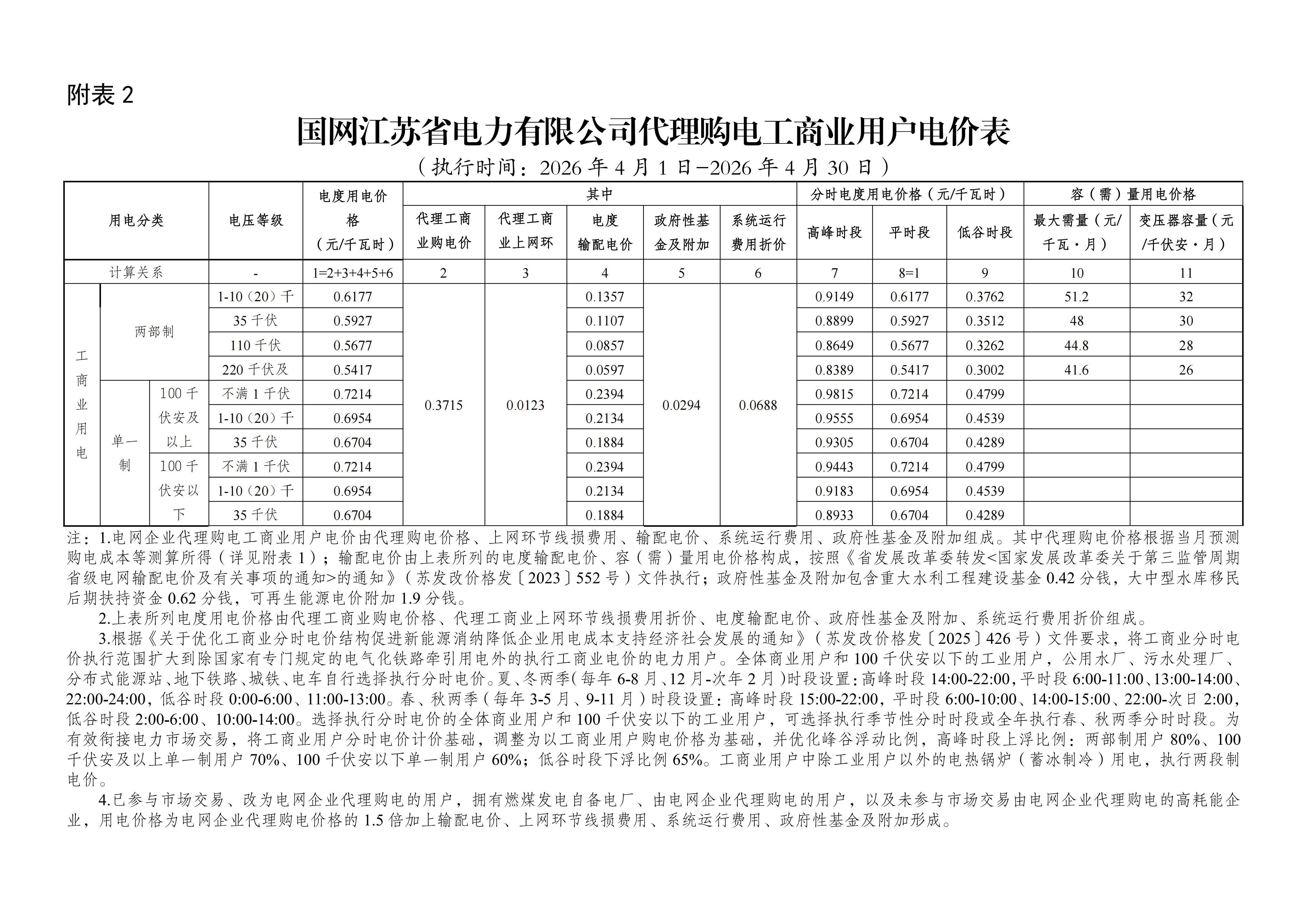 7.江苏省4月工商业电价