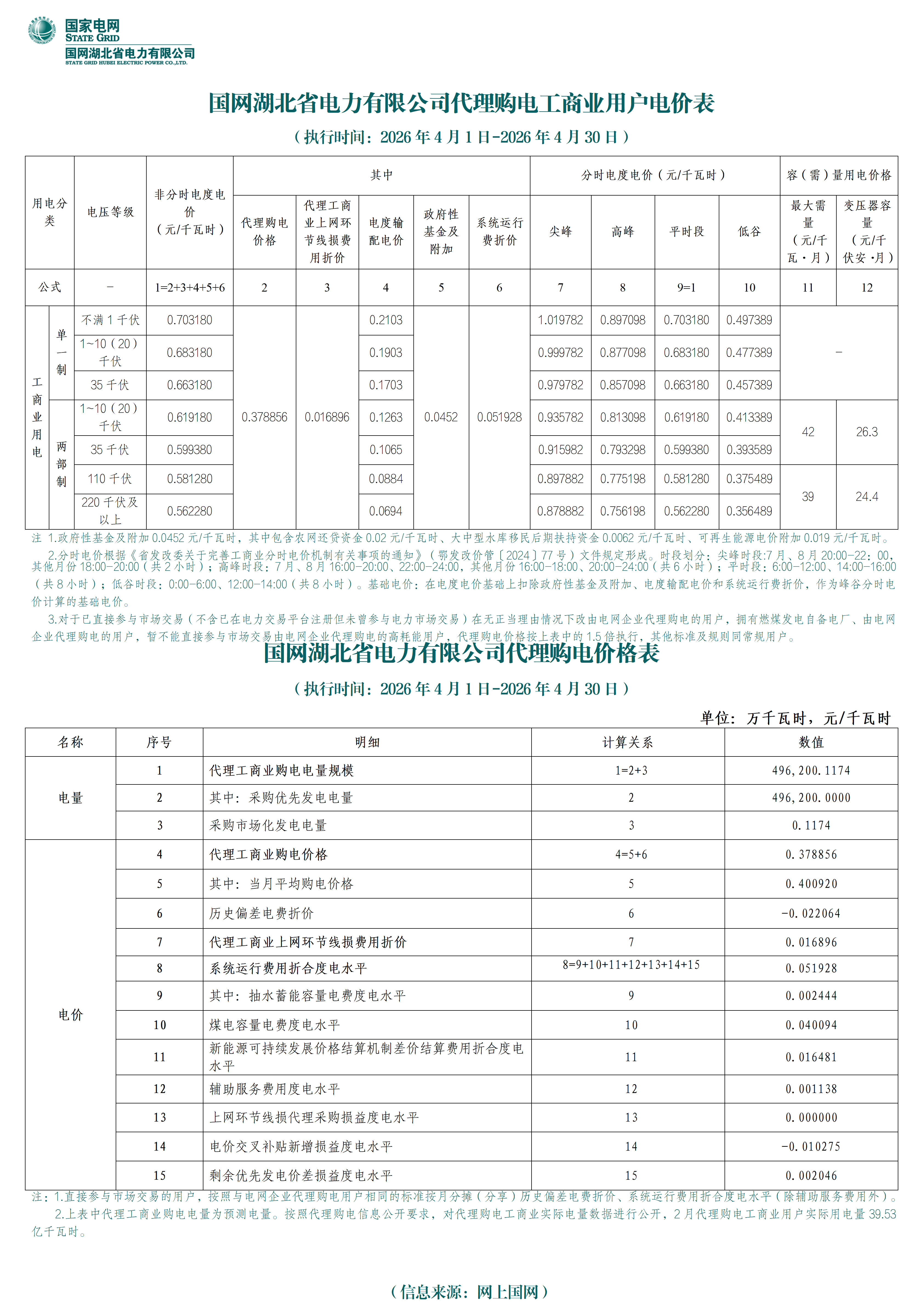 9.湖北省4月工商业电价