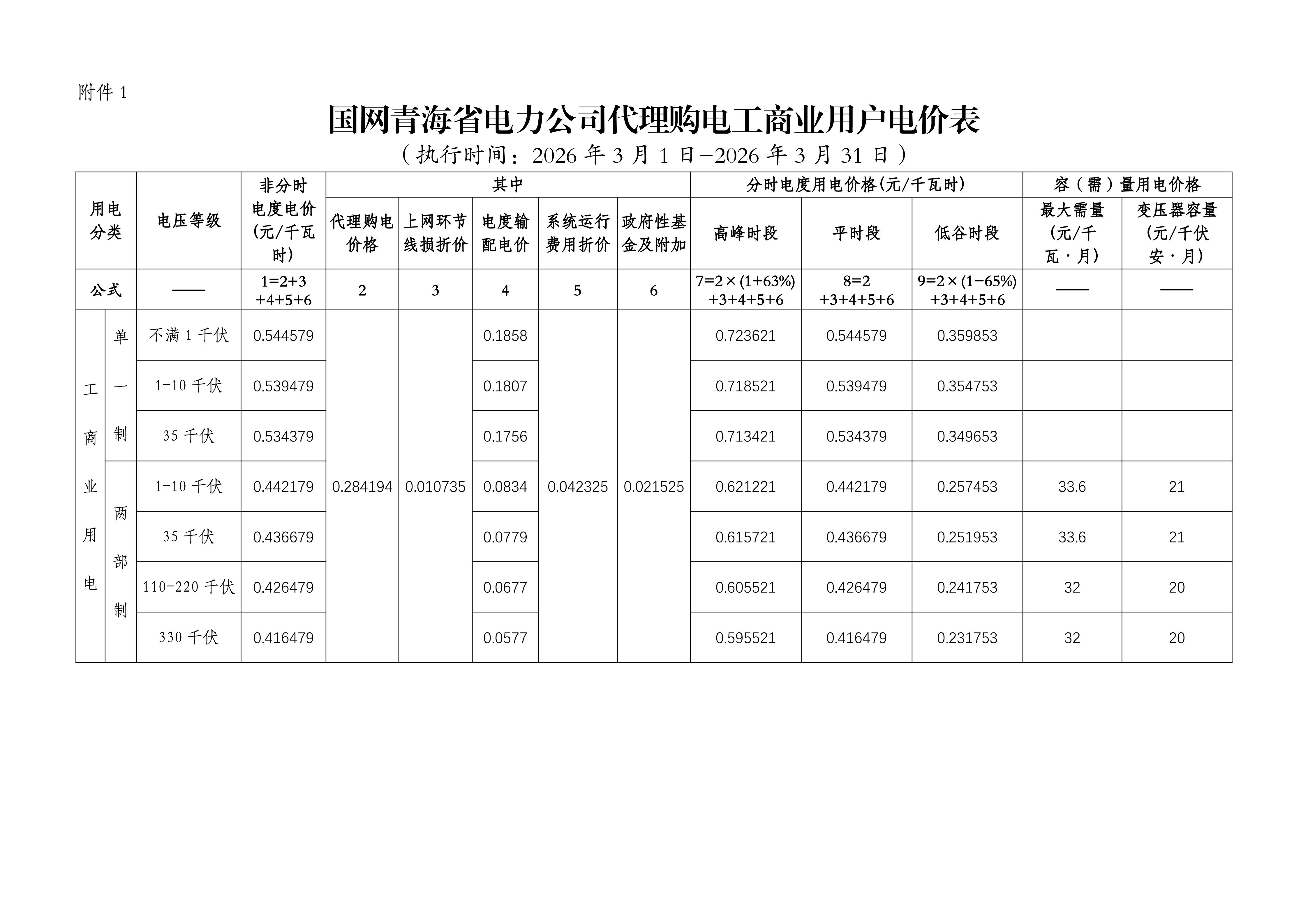青海省3月工商业电价