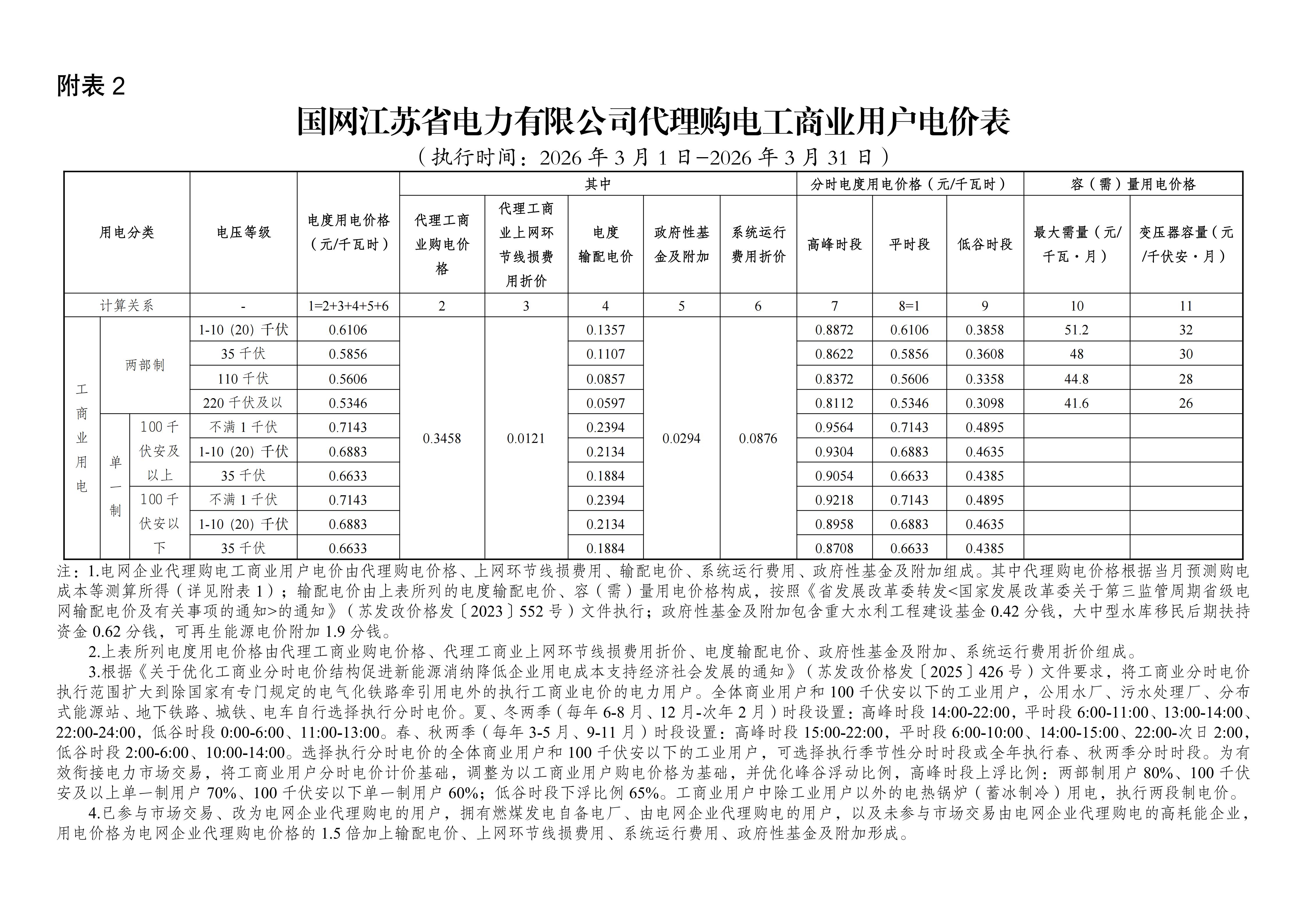 江苏省3月工商业电价