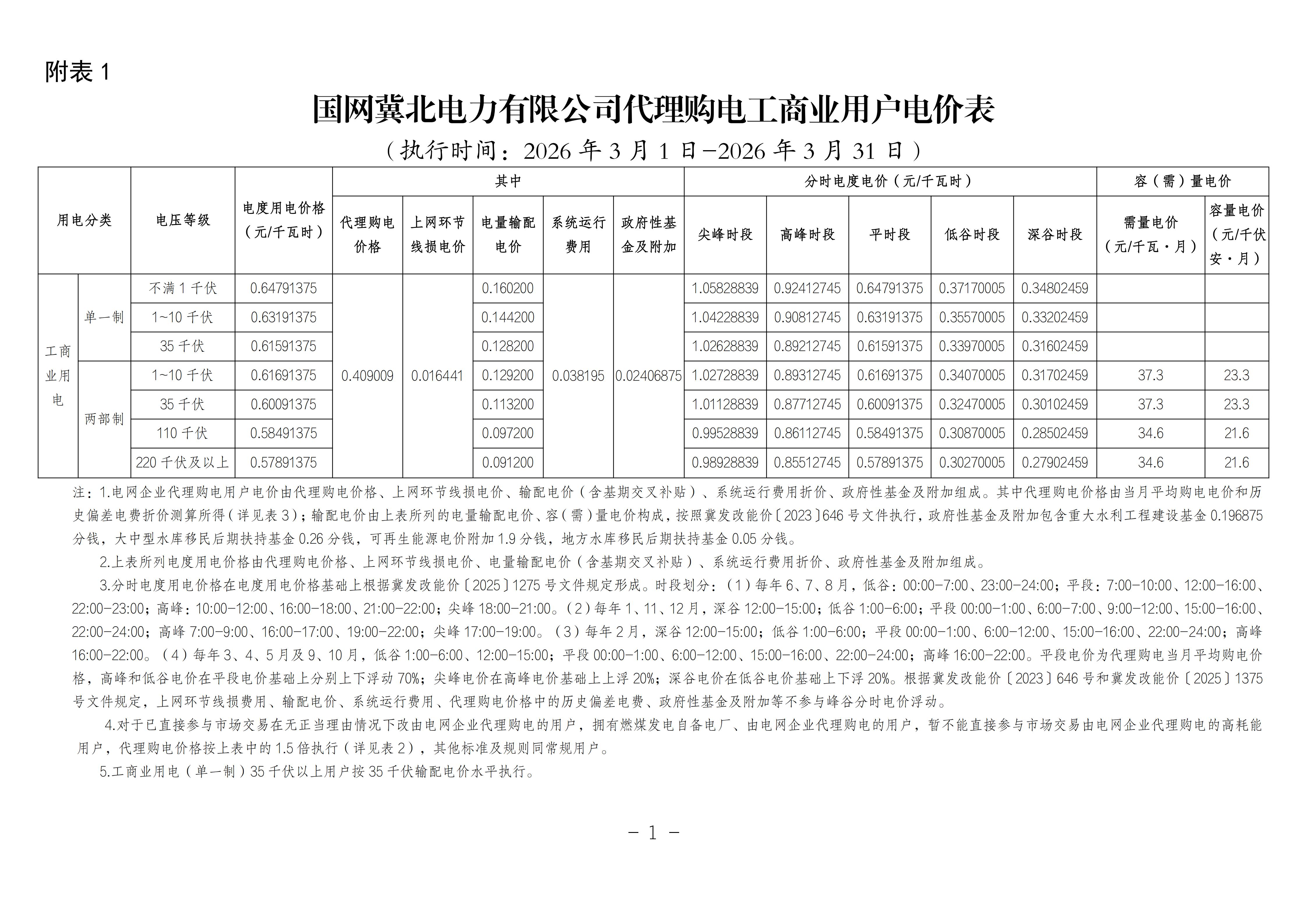 河北省3月工商业电价