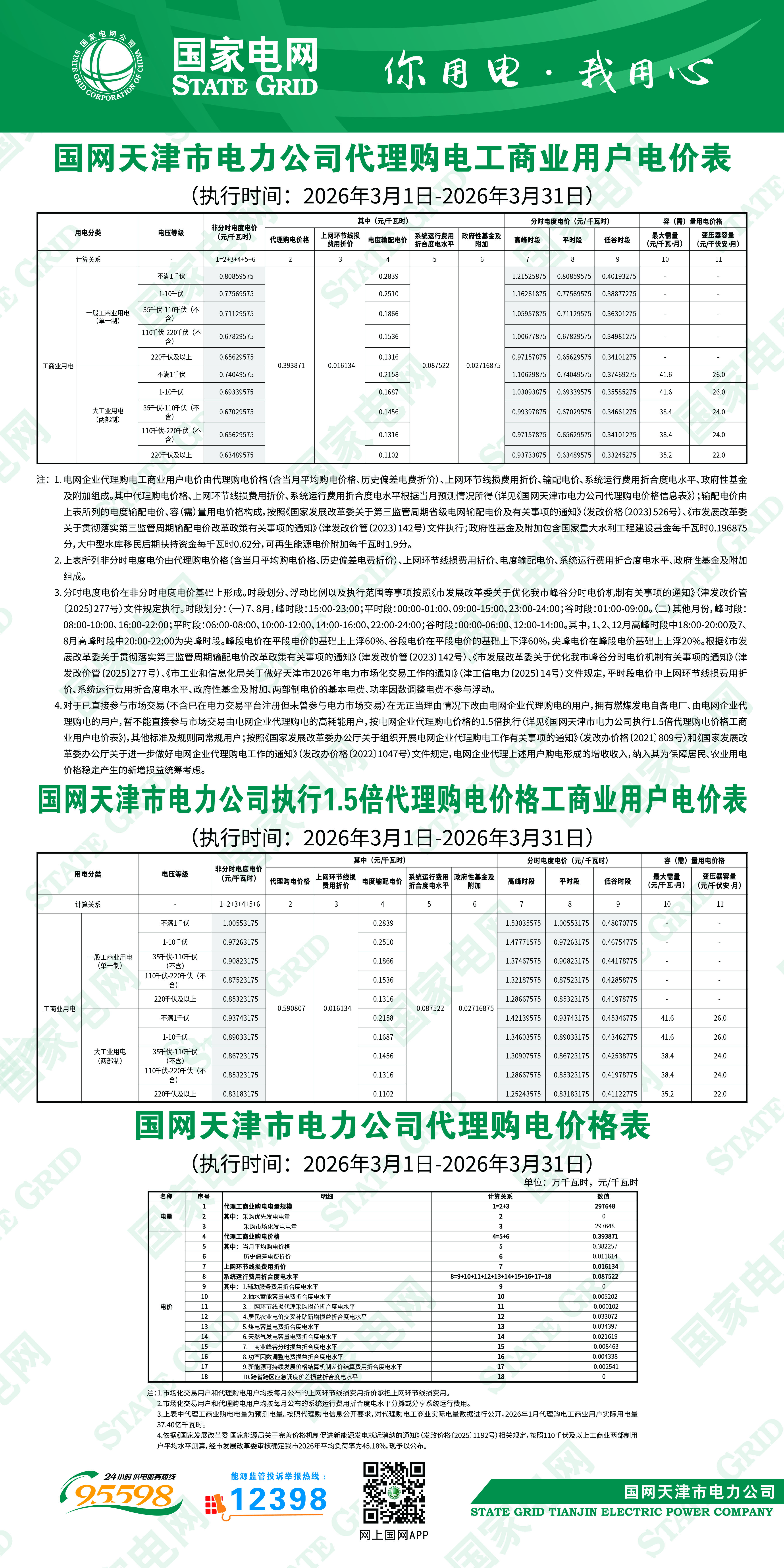天津3月工商业电价