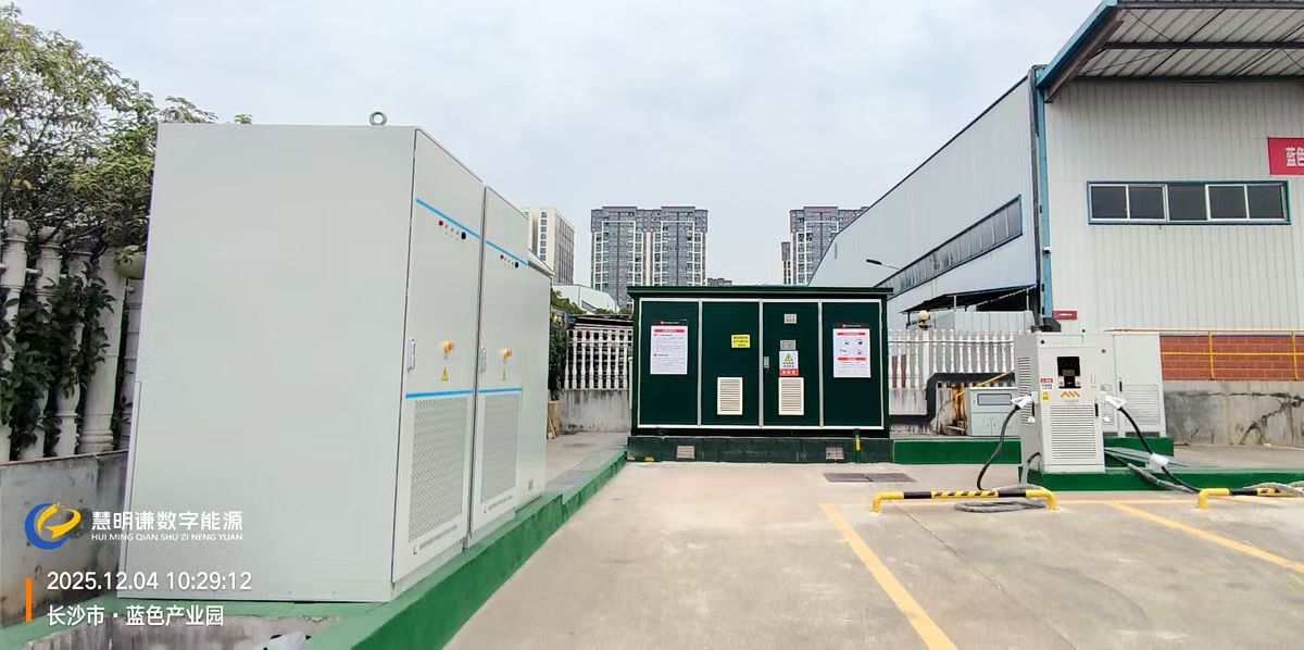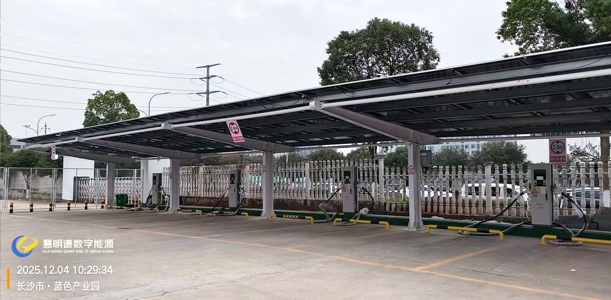 技术方案:本项目采用 “光储充一体化”智慧能源解决方案。具体实施包括:在园区车棚及厂房屋顶建设320kW光伏系统;配置两台125kW/261kWh储能柜,执行谷时充电、峰时放电策略;建设18个直流快充终端,构成总功率1200kW的智能充电网络。所有设备将接入智慧能源管理平台,依托园区1250kVA配电网络,实现对发电、储能、充电及用电负荷的一体化智能调度,确保“自发自用、余电存储、峰谷套利”目标的高效达成。